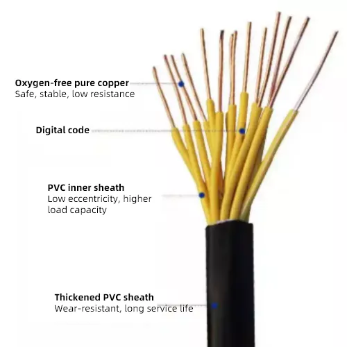 Tính chất cơ học: Cáp điều khiển bọc cách điện PVC lõi đồng chất lượng cao có độ bền kéo và chống mài mòn nhất định, thích hợp cho việc lắp đặt cố định trong nhà. Tuy nhiên, nó không thể chịu được lực cơ học mạnh từ bên ngoài (chẳng hạn như việc chôn trực tiếp có thể dẫn đến hư hỏng do đùn) và cần được bảo vệ bằng phương pháp xuyên ống hoặc khay cáp.