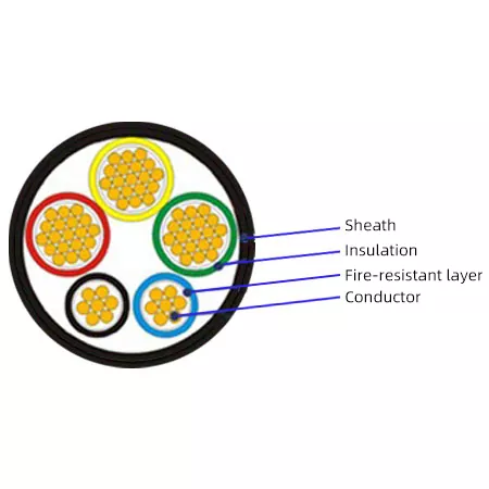 Lớp chịu lửa (Core Soul): Dây dẫn được quấn chặt bằng băng mica chịu lửa. Đây là chìa khóa để đạt được chức năng chống cháy. Trong ngọn lửa nóng, băng mica cháy thành lớp vỏ cách điện chắc chắn giống như gốm bao quanh dây dẫn và ngăn ngừa đoản mạch, do đó duy trì điện ngay cả sau khi lớp cách điện bị đốt cháy.