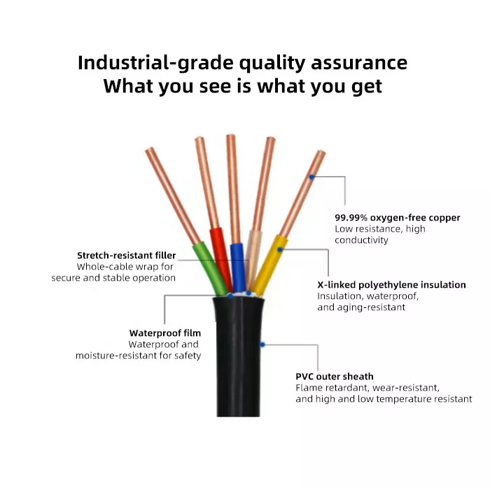 2. Hoạt động ổn định ở nhiệt độ cao: Lớp cách điện XLPE đảm bảo Cáp nguồn bọc PVC cách điện XLPE chống cháy ổn định trong môi trường nhiệt độ cao bình thường hoặc trong trường hợp quá tải.